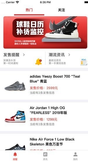 skr达人是一款各类潮物潮鞋专卖软件,有很多各类潮鞋资讯可以查看,可以查看品牌新品的发售日期,还有最近爆火的潮物资讯。也可以在平台上购买,平台保证商品时正品好货,还要很多优惠活动,各种优惠券还有拼团模式,喜欢的小伙伴快来下载使用吧!