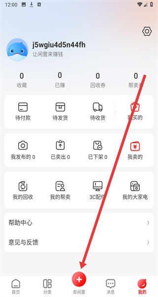 1、需要卖东西的情况,可以点击下方卖闲置按钮,进行相关操作。