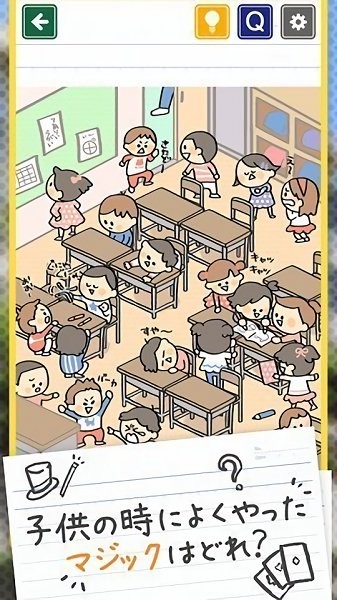 1、愉悦的漫画风,小学生打打闹闹的教室,增加解谜难度。