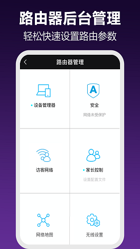 4、路由器管理:随时随地查看连接设备数量,安全状态一目了然,360度掌握路由器消息.