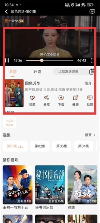 3、进入播放页面后,可通过进度条调整播放进度,还能使用收藏、下载等功能。