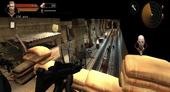 游戏的氛围感做的非常的不错,右上角有雷达可以看到僵尸的位置,你将在地下逃脱他们的围攻,利用自己的武器,用强大的火力压制他们。