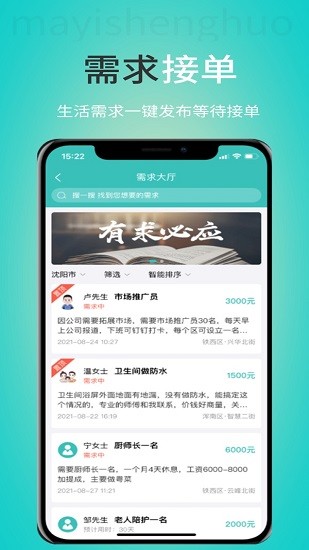 需求接单:发布者找人,服务者找活。精准呼应,完美融合。