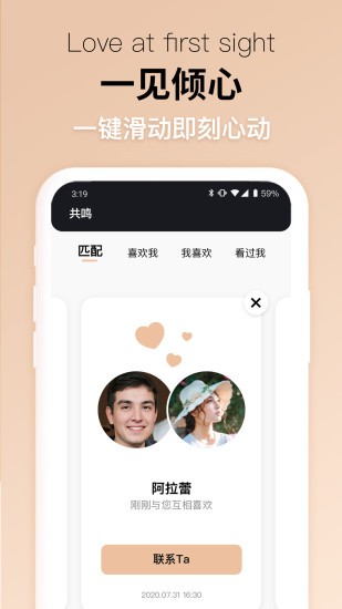 6、即刻进行心动匹配,帮助用户开启缘分社交模式,认识更多志趣相投的异性用户;