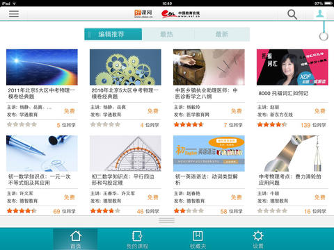 2.无论你是正在准备升学考试、资格认证,还是希望扩展知识技能、兴趣爱好,都可随心选择感兴趣的课程进行学习,随时随地享受好课。