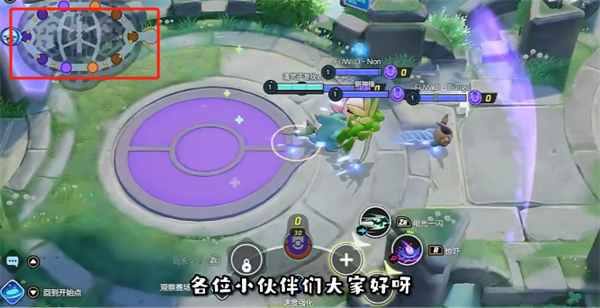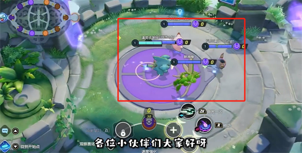 分为友方和对方,友方为紫色,对方为橙色,把亿奥斯能量注入对方队伍的得分区就能为自己的队伍增加分数,在友方得分区中宝可梦可以回复体力。