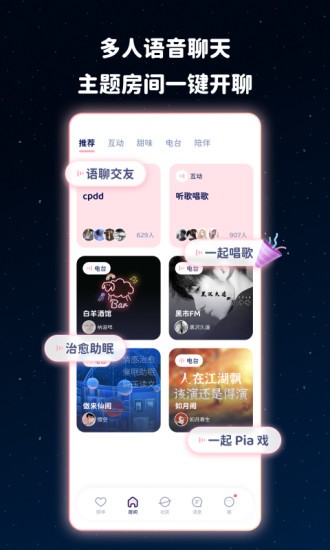 甜味APP是一个聚集了非常多不同陪伴功能的平台,大家可以随时在这个地方连麦聊天,还可以选择在树洞中倾诉自己的心情,也可以在这里找到一个陪伴自己一起学习的人。平台里面包含了非常丰富的社交功能,各种各样的功能都可以找到,当你在情绪低落或者工作压力大,或者想要找人倾诉的时候,都可以来这里,能够让你轻松的释放自己的心情,也可以让你获得短暂的心动体验。