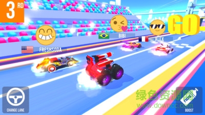 2、每辆赛车都有独特的外观和属性。您可以收集配件以增强动力。