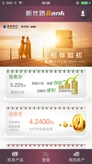 新丝路Bank是西安银行依托于互联网渠道推出的直销银行品牌,通过这种全新的纯互联网银行模式,用户无需前往我行网点,在新丝路Bank中即可办理电子账户的开户、转入、提现、产品购买等业务,非西安银行客户也可享受上述服务。目前主推丝路宝、智惠存两款产品,让您尽享新丝路bank为您带来的理财新体验。