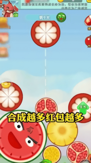 2、让你的角色每一关都能获得更大的合成西瓜,合成的越大你将会有丰富的奖励,同时也能解锁更大不同的模式