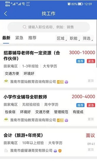 淮南直聘网app是一款功能非常强大的手机求职招聘软件,为大家提供了超多的岗位,用户随时都可以通过平台高效的求职,企业也可以在这里找到适合的人才。平台里面包含的岗位很丰富。