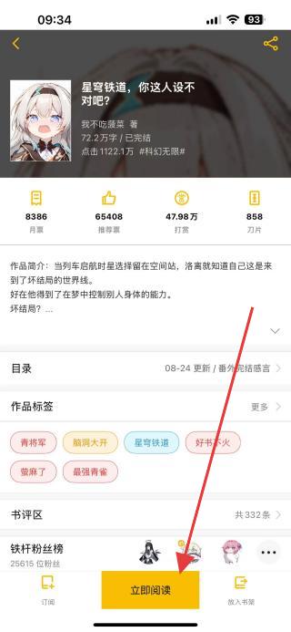2、进入小说详情页后,点击立即阅读按钮开始阅读该小说。