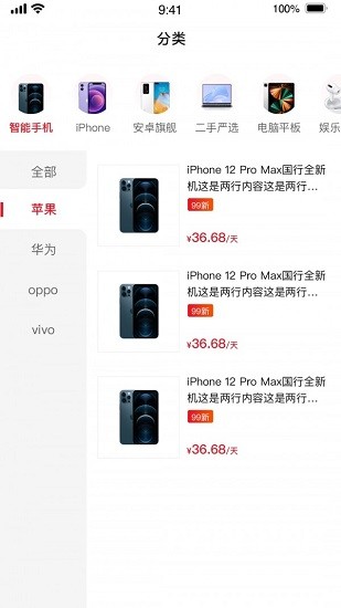美美租机非常实用的一款电子产品租赁平台,有非常丰富的各类电子产品可以出租,而且还不需要押金就可租赁,十分的方便,各种手机电脑的机型丰富,能够给你带来全面的选择,租约到了好可以选择续租或者直接买,有需要的小伙伴快来下载体验吧!