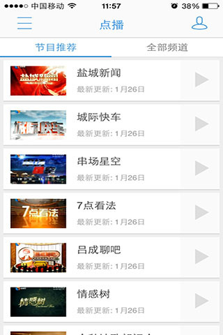 1.“智慧盐城”手机APP的在线直播,用户可以可以收听收看盐城广播电视台的所有广播电视节目。点播模块可以在线回看《盐城新闻》、《看世界》、《串场星空》等盐城广播电视台的自办节目。