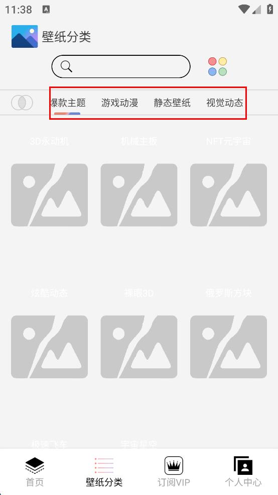 3、进入分类后,在其中找到自己喜欢的板块,寻找自己喜欢感兴趣的壁纸。