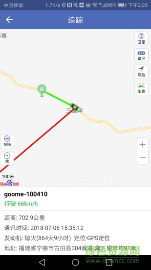 3.在线查车:随时查看车辆实时位置,定位精度可达到5米以内。