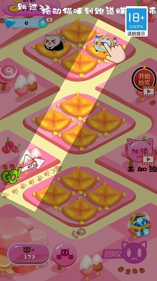 猫咪的游戏是新推出的休闲闯关小游戏,游戏的画风非常治愈,采用的是粉色系的色调,让老夫的少女心不由得爆棚了起来,结合了合成的玩法和元素,在这款游戏中你可以将相同的猫咪通过合成的方式进行升级,并拖动到跑道上进行闯关。