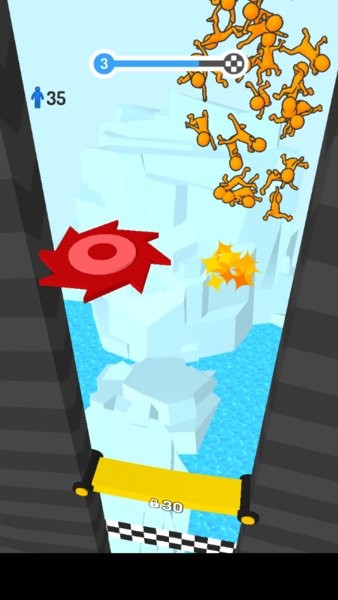 人群瀑布这款游戏非常有趣,游戏中你要使用小人在高处落下形成一个人型瀑布,你通过一些翻倍的弹簧,可以给你增加人数,不断的增加人数到达最下面,也有减去人数的门,也有很多的障碍物和陷阱机关,要避开他们,这样到达最下面就可以获得最高的分数,赶快下载体验吧。