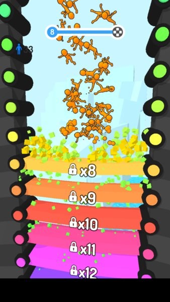 1、完成更多不同关卡的挑战,下落过程中的小人会变得更多。
