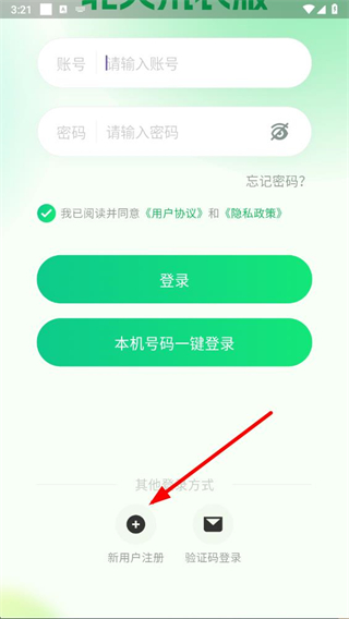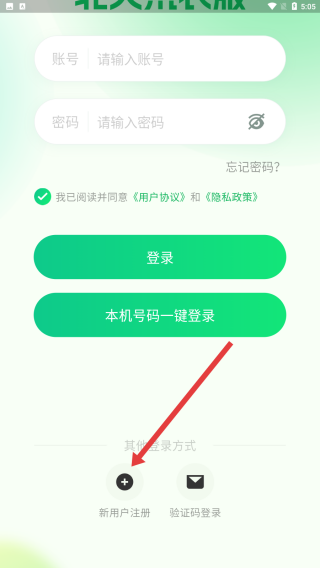 2、在登录页面,可以点击底部新用户注册选项,跳转至注册界面,准备开始创建账号流程。