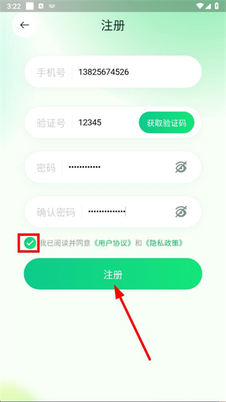 4、勾选同意相关协议后点击注册按钮,即可完成注册登录操作。