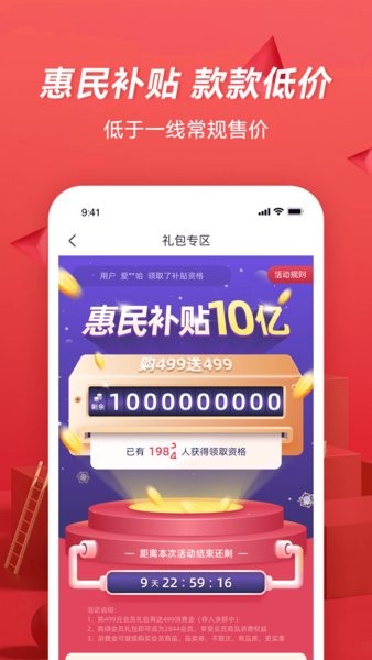 超多精彩活动等你来,每日精选、限时秒杀、低价拼团、特卖扫货、当季新品、大牌闪购、免费抽奖、优惠礼券等活动让购物更快乐。更有超多会员专享福利,购买会员礼包整单返余额,更多精彩等你发现。