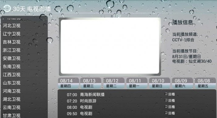 30天电视回播是一款为智能盒子打造的一款回看软件。该软件特点:时间超长30天,清晰度高,流畅,回看节目丰富!