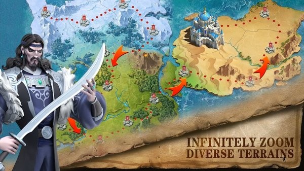游戏采用3D高解析度画质,还原了多种真实地形。草原、雪地、沙漠、海洋,丰富的地貌地形让你的战略才华得到更好的发挥。此外,我们还在大地图放置了多种野怪:叛军、蒙古骑兵、维京长剑士和魔龙,置身于生动的历史世界!