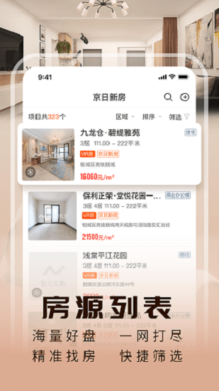 苏州京日新房这是一个非常优质的买卖房子的平台,这里可以看到最新的房源信息,可以在线查询自己喜欢的小区的房源,或者是查看装修的设计图,这里还可以帮助用户设计好新房的装修,让你买房、装房一键完成。