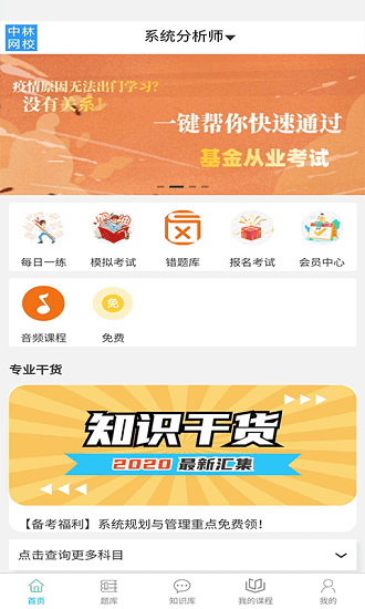 中林题吧软件是非常好用的一款职业类型的手机学习app,在这里用户们能够找到超多种类的专业课程进行学习,帮助用户们能够在这里学习到超多的职业技能,让用户们能够找到更多的好工作,更好的生活,超级的好用。