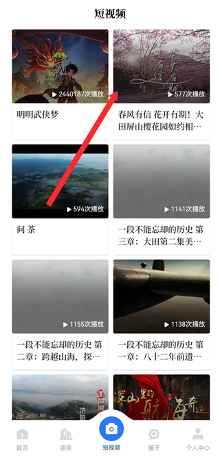 2、在短视频板块页面,挑选需分享的视频,进入视频播放操作页面。