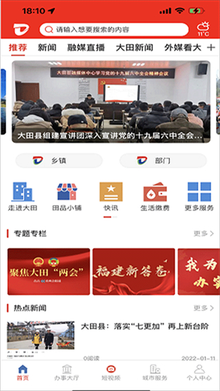 1、非常丰富的新闻频道,可以掌握大田县周边的各种新闻内容。