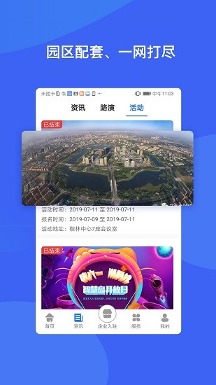 4、平台上面为用户提供了本地新闻资讯,还能收看园区最新活动。