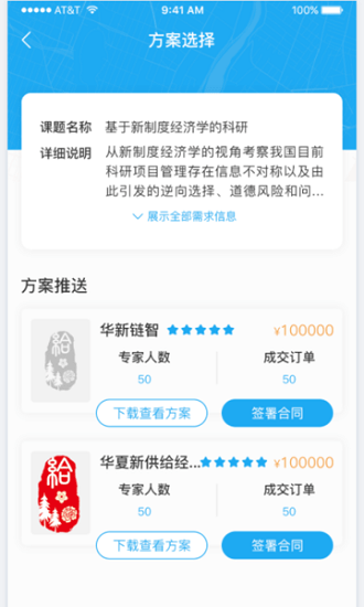 华新链智,专业智库。平台上入驻了很多行业的专家,收录了大量专业性科研方案,用户可以通过自行搜索、分类浏览进行查看;所有方案都有详细的课题信息介绍,方便用户进行了解,用户也可以自行发布服务,等待别人接取。有需要的用户赶紧下载华新链智看看吧。