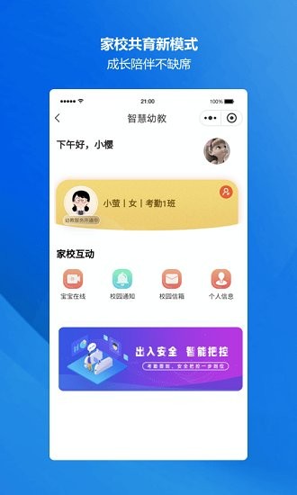 2.宝宝在线,清晰流畅的家长开放视频体验,让家长能随时知道孩子的情况.