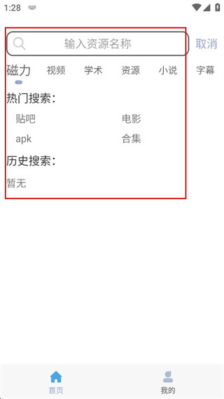 4、登录后返回首页,点击搜索框,即可输入资源名称进行搜索。