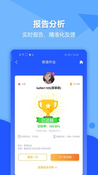 每个练习作业、试卷均实现AI智能批改,各类统计一应俱全;学生完全可以通过即时反馈改进学习方法。