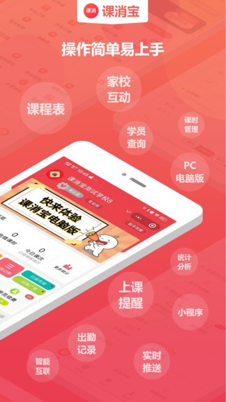 课消宝适合音乐、K12、美术、幼儿教育、体育、职业培训等各类培训学校的学员课消,课消记录微信推送提醒,课消统计实时分析,让教务管理人员从繁杂的工作中解放出来,提高管理效率。
