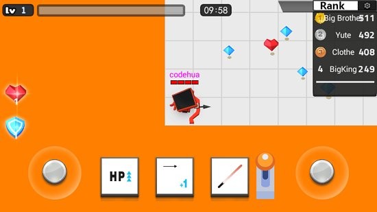4、通过虚拟摇杆控制走位,利用手中的弓箭击败对手