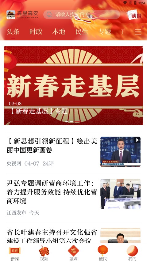 高品高安app是一款专门为高安市打造的新闻融媒体服务平台,在这里随时为用户们发布最新的资讯信息,涵盖的新闻内容十分全面,让你可以在线读报、看资讯,实时来轻松关注身边的精彩内容,还能自由发言,让你能够与同城好友自由的在线交流,让你可以随时掌握本地的最新动态。