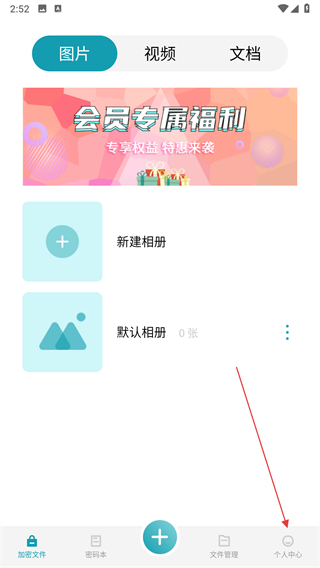1、打开伪装计算器应用,点击右下角个人中心选项。
