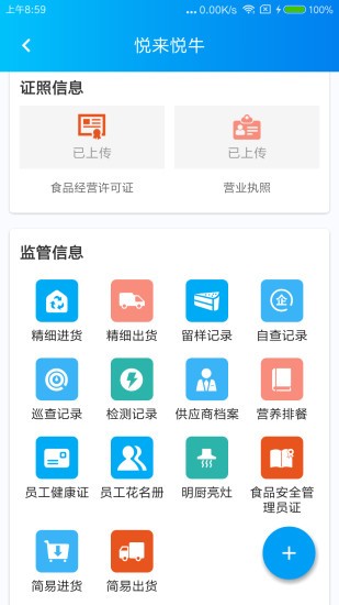 经营者-农贸市场类:可以通过日常管理功能自主上传证照信息,还可以通过台账管理快捷上传简易台账,实现食品溯源追踪。可以在线查看巡查和检查结果,进行整改。