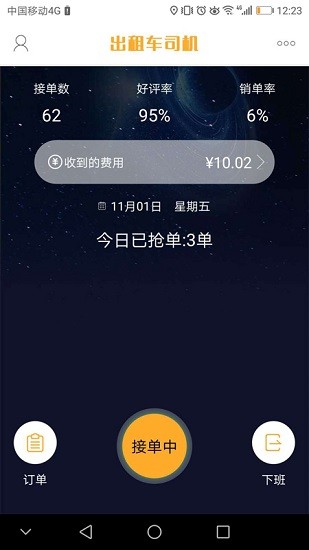 4、可以使用手机在任何时候开始听单,能够获得系统派发的实时订单,你可以直接接取。