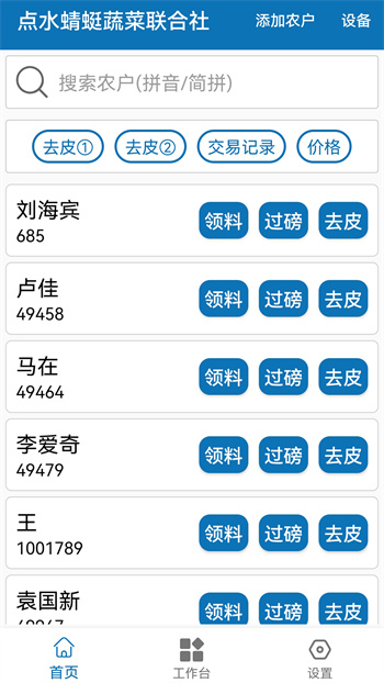 2、首页新增“扫码”,适用于通过农户二维码查找农户,在农户忘记带卡时使用;