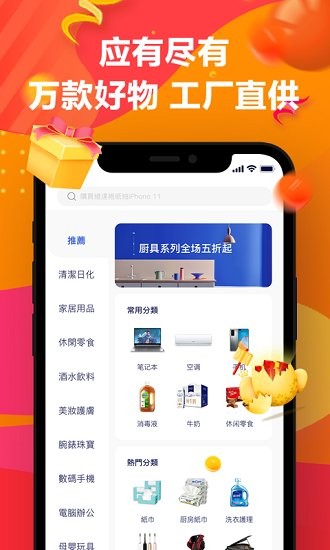 2、享受优惠便捷购物体验,将省钱购物进行到底,手机一键购物软件;