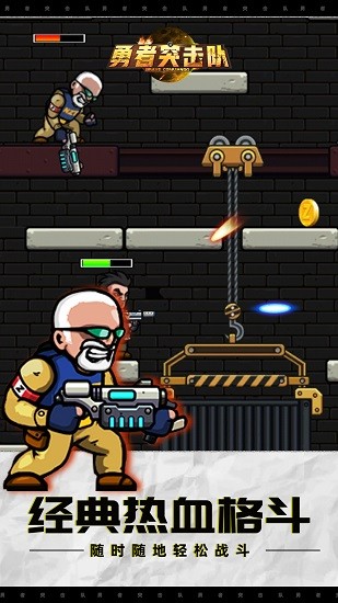 《勇者突击队》是一款动作射击游戏,在游戏中,你将以突击队员的角色进行冒险,在不同区域中与成群结队的敌人作战;游戏玩法简单,屏幕上的操纵杆和控制按钮,可以让你很好的控制你的角色,给予敌人致命的打击,随着游戏的进行,你会收获一系列不同的武器,将武器升级,加强你的战斗力,渗透敌方所在地,并摧毁他们。