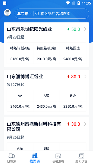 2.可从平台上看到各个造纸厂最新的价格信息。