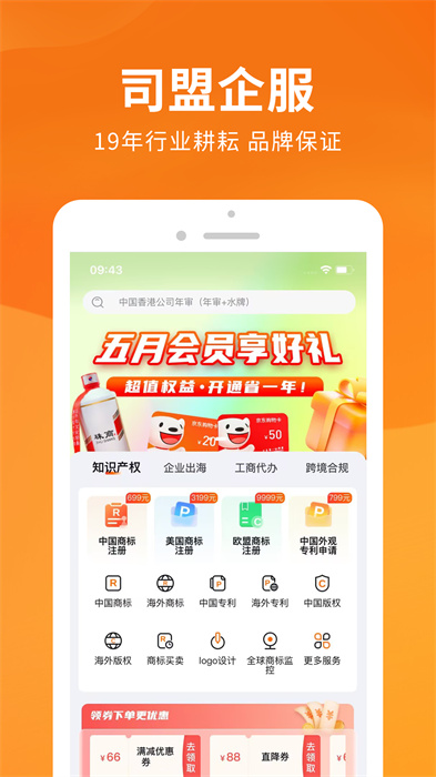 百万商标即买即用,抢占市场,司盟企服app为老板们提供最专业的服务,助力企业健康发展.