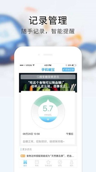 手机糖宝在这里用户可以每天实时记录自己的血糖数据,通过连接设备进行测量,然后进行实时录入。你可以查看自己的一天的健康趋势如何,还可以在线询问专家医生,有什么问题都是可以直接提问。线上还会为你智能分析你的健康情况,欢迎有需要的朋友下载使用!