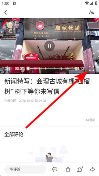 3、在视频详情页面,点击右下角全屏按钮,即可全屏观看视频内容。